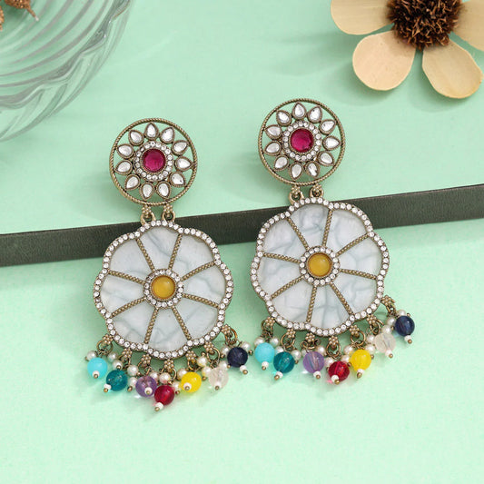 Yellow Stones Elephant Theme Oxidised Hoop Earrings