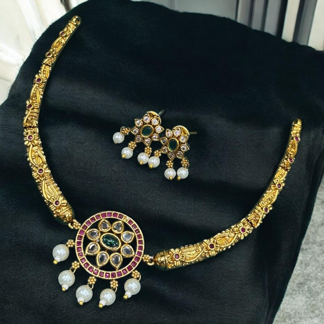 The Kanti Necklace Set from Super Macchi Jewellery captures the timeless elegance of South Indian craftsmanship. This exquisite set combines intricate designs with traditional charm, making it perfect for festive occasions and weddings. Shop now from Super Macchi to add a touch of heritage and sophistication to your jewellery collection.